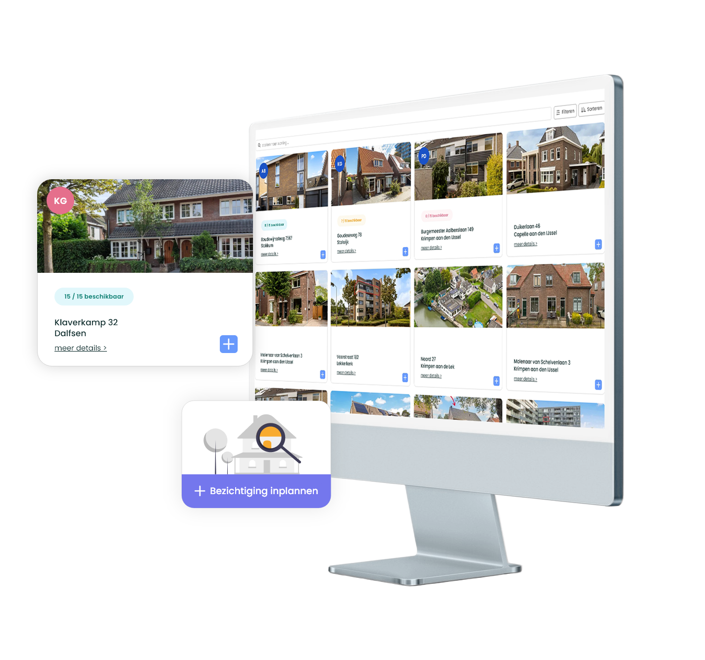 De bezichtigingsplanner neemt het plannen en coördineren van bezichtigingen grotendeels uit handen. Kandidaten kunnen zelf een tijdslot kiezen, jij behoudt het overzicht zonder eindeloos heen en weer te bellen of mailen.