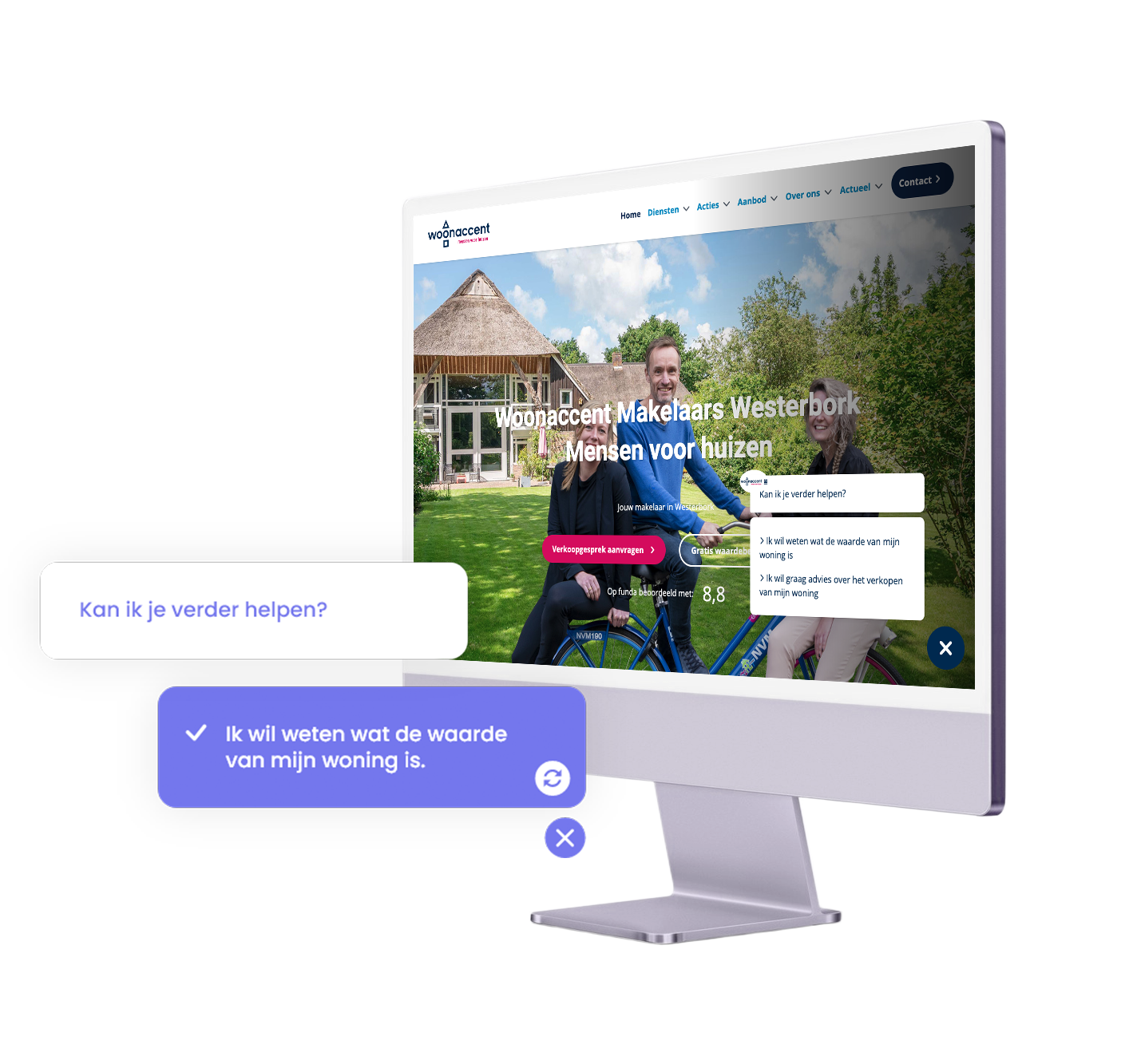 Heb je de Chatbot-tool in jouw Nexxtmove-pakket? Super! Binnen een paar minuten staat de chatbot op je website. Het toevoegen van de chatbot aan je website is heel eenvoudig. In Nexxtmove vind je een kant-en-klare code die je (of je webbouwer) maar één keer hoeft te plaatsen. Daarmee zorg je dat de chatbot zichtbaar kan worden op je website.