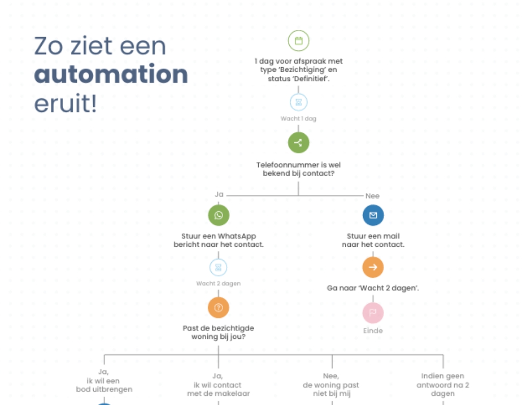 Hoe haal je als makelaar meer uit je leads zonder extra tijd te verliezen? In deze whitepaper ontdek je hoe marketing automation jou helpt om slimmer te werken. Je leert hoe je met geautomatiseerde opvolging, gepersonaliseerde campagnes en slimme workflows meer afspraken en meer klanten realiseert, zónder dat het je extra uren kost.